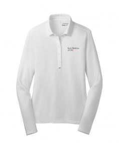 Dri-FIT moisture management technology and stretch fabric make this long sleeve polo a true performer for her. Tailored for a feminine fit with a self-fabric collar, five-button placket and open cuffs. Heat transfer label for tag-free comfort. Below the placket. Made of 5-ounce, 100% polyester Dri-FIT fabric. Complies with Prop 65.